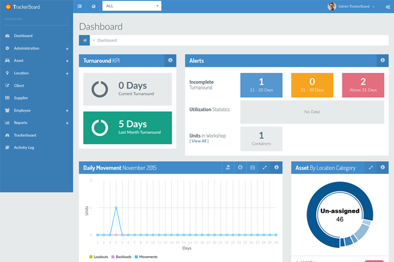 Trackerboard is an advanced Asset Tracking Tool on Cloud, which generates reports based on Turnaround and Utilization. This Cloud Solution comes with an easy to use interface, enabling multiple employees to manage the movements in an organization. This solution is not only used by rental companies which supplies Assets such as Containers, Tanks, Vehicles, Heavy Equipments etc on lease, but also by organizations which own these equipments.